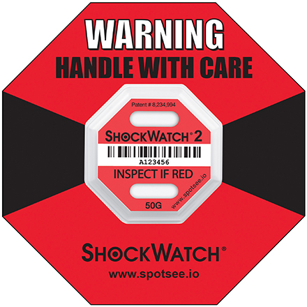 Bi-directional, vertical response impact indicator detects mishandling of products turning transit or storage.